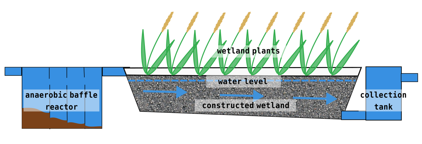 When dirty water enters the constructed wetland it gets in contact with filter media & plants & microba. During the retention time water contaminants are removed by 90%, resulting a cleaner water appropriate for irrigation!
